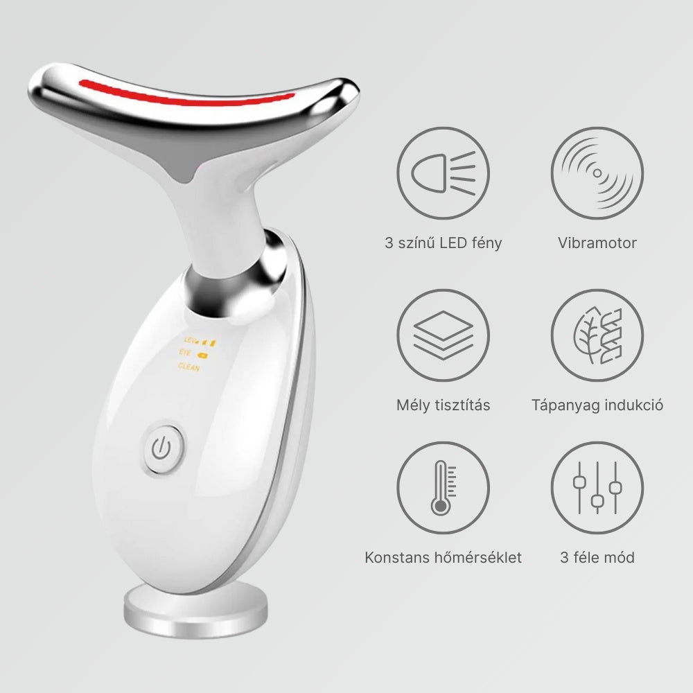 A modern bőrápolás már nem igényel szalonidőpontot vagy drága kezeléseket. Ez a kompakt arc- és nyak-lifting gép kifejezetten az arckontúr, nyak, toka és dekoltázs területére lett tervezve. A mikroáram aktiválja a bőr mélyebb rétegeit, serkenti a vérkeringést, valamint a kollagén- és elasztintermelést. A hőhatás megnyitja a pórusokat, javítja a hatóanyagok felszívódását, míg a finom rezgések segítik az izmok ellazulását és a nyirokkeringés serkentését.